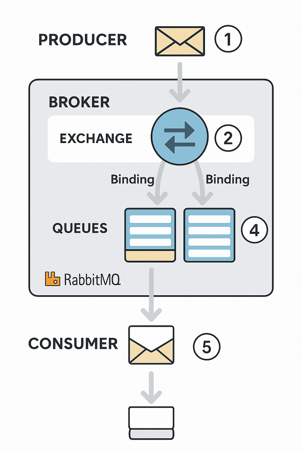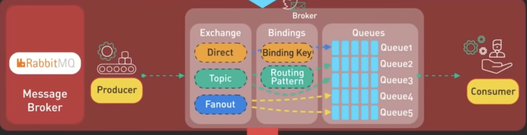RabbitMQ에서 중요한 개념으로는 Producer, Consumer, Queue, Exchange, Binding이 있다.