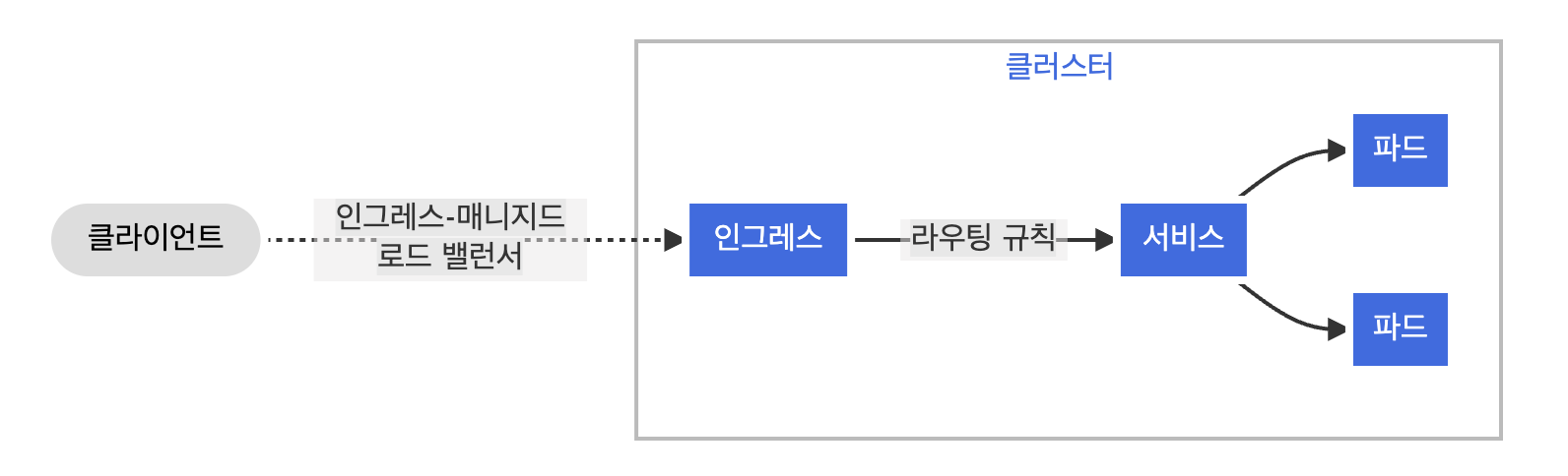 이 흐름을 통해 외부 요청이 클러스터 내부로 유입되어 적절한 서비스로 전달되는 과정을 체계적으로 제어할 수 있다.