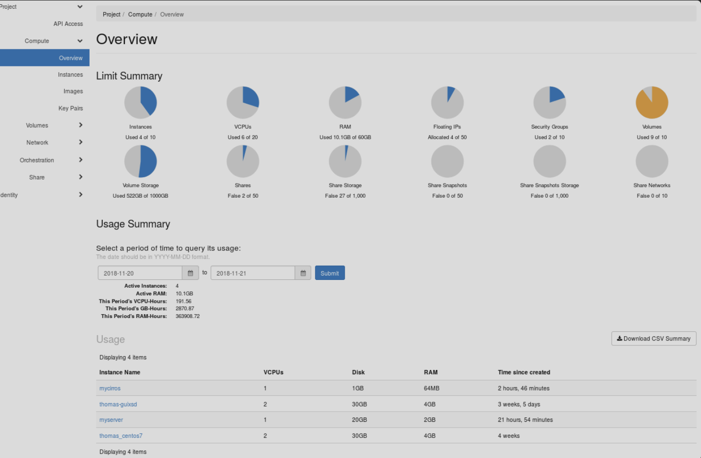 - ✔ 사용자, 프로젝트, 네트워크, 스토리지 등을 GUI에서 쉽게 관리 가능