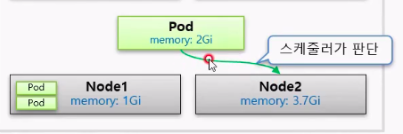 kubernetes 스케줄러가 node의 자원을 확인해서 자원이 많은 node쪽으로 pod를 할당해준다.