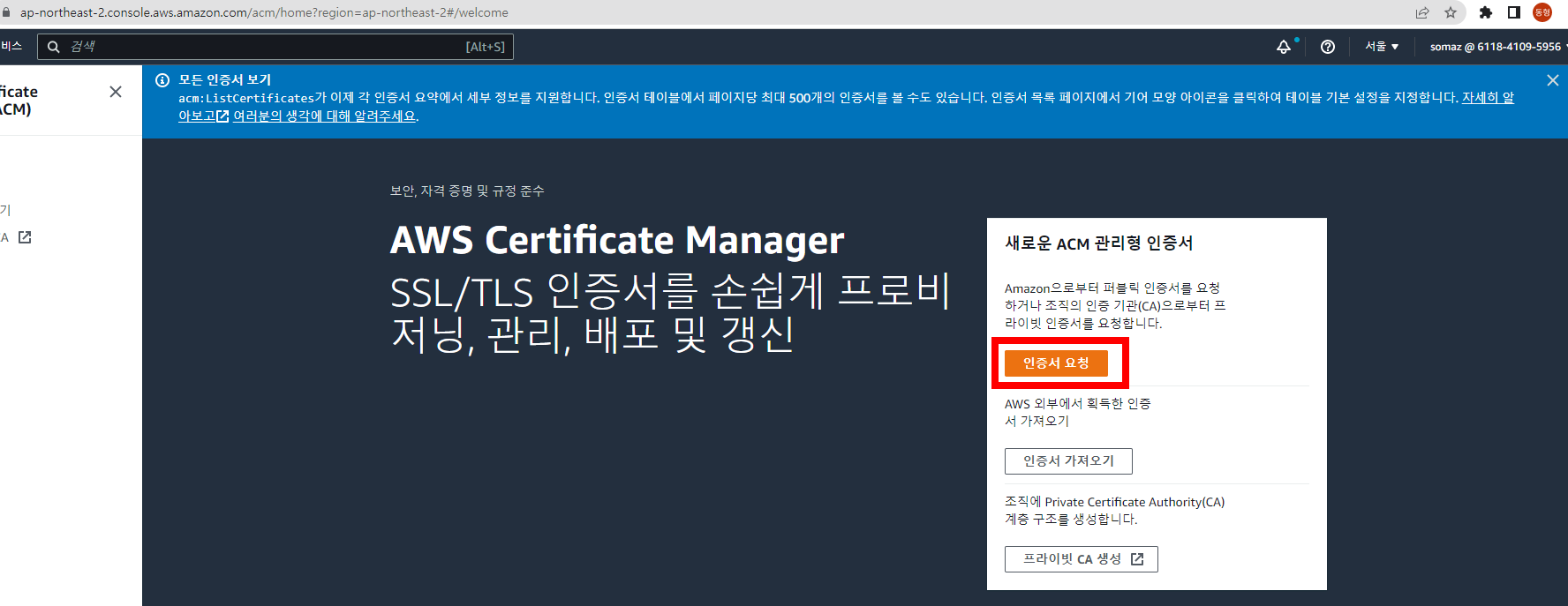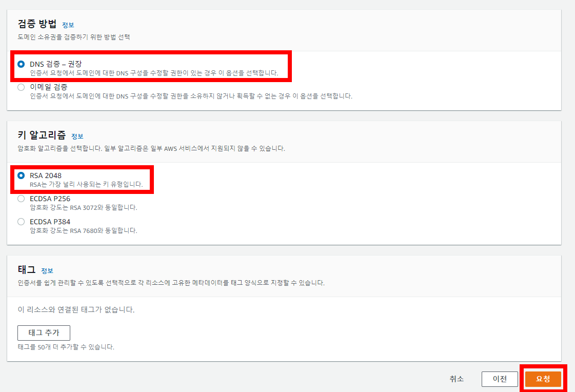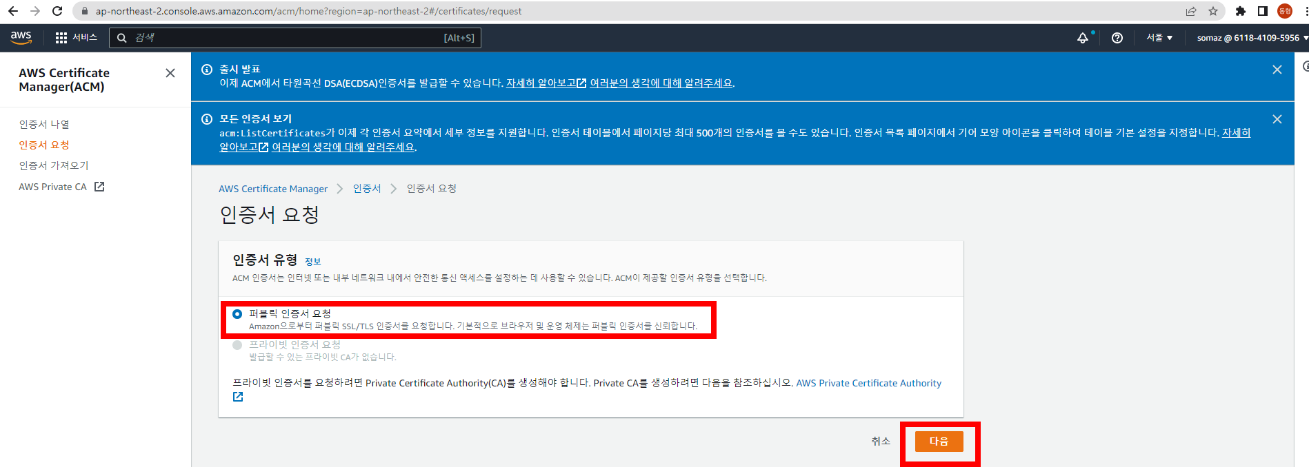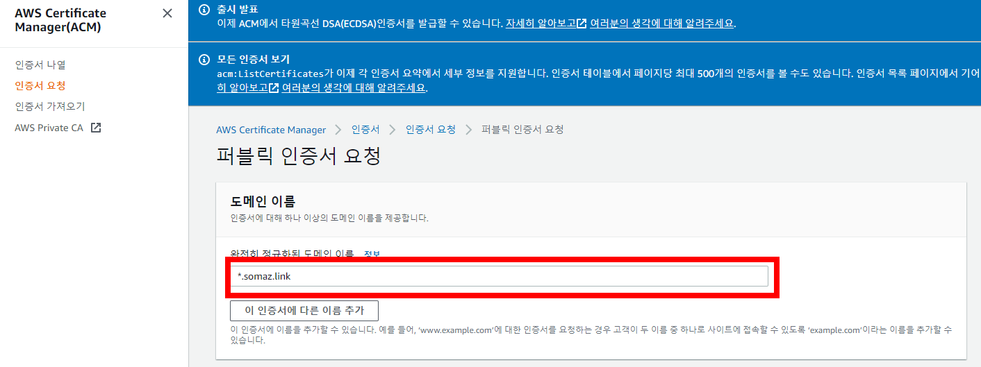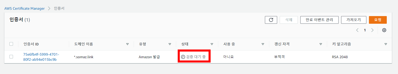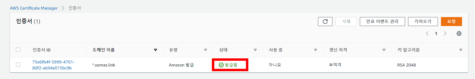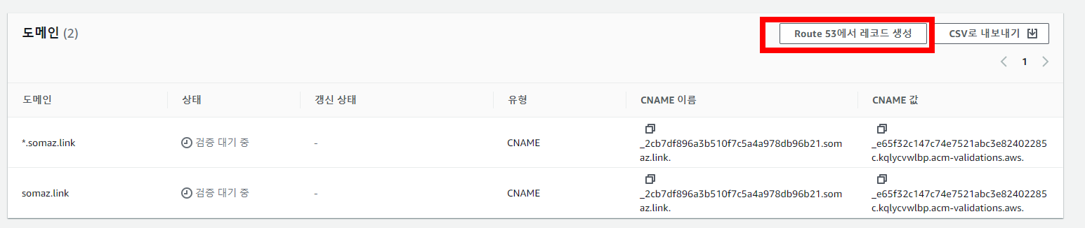 - ACM을 통해 인증서 요청 및 DNS 검증 완료