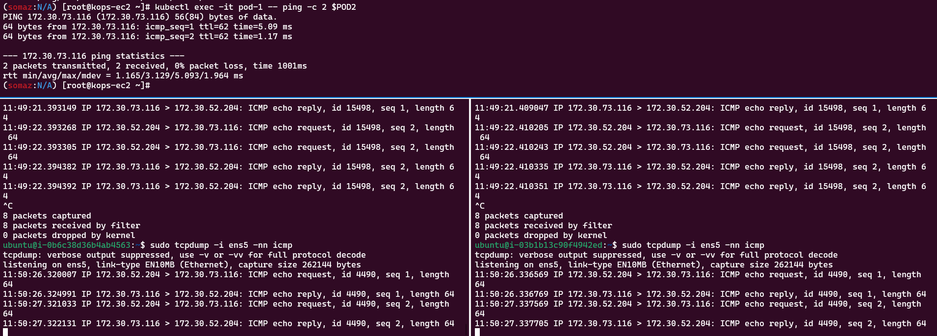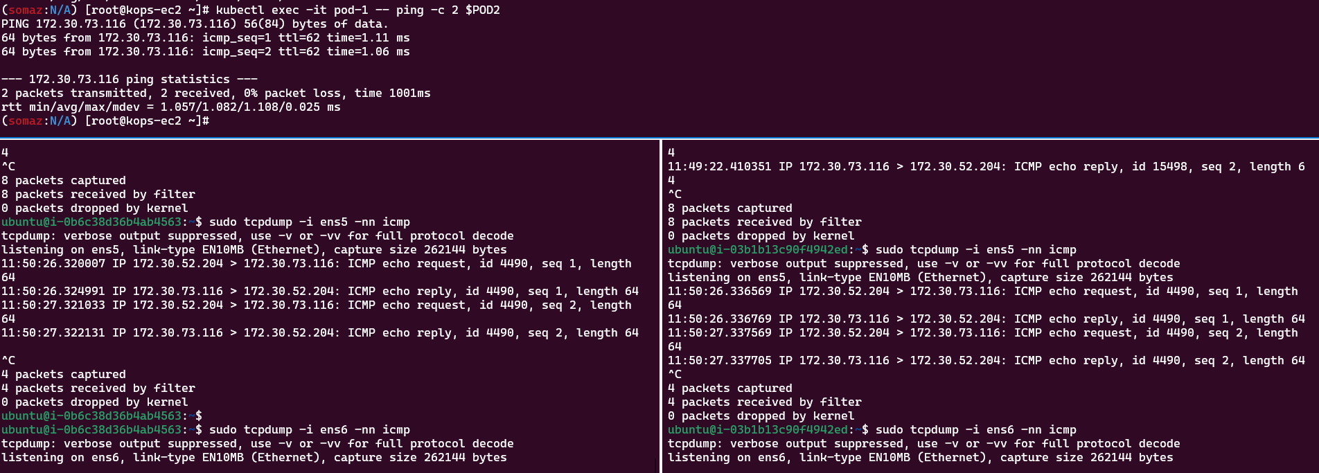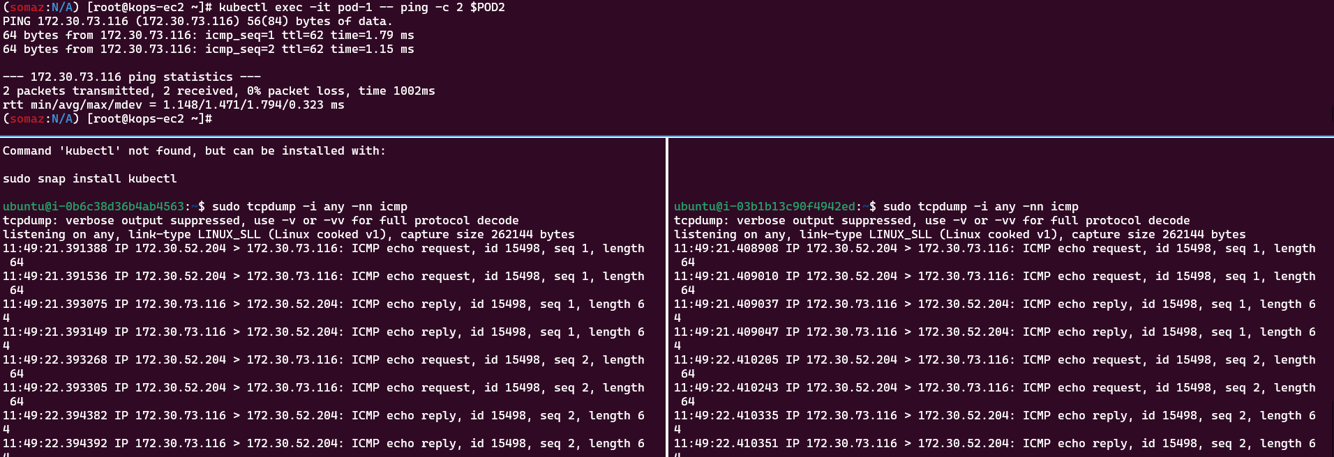 - tcpdump를 통한 Pod 간 패킷 흐름 확인