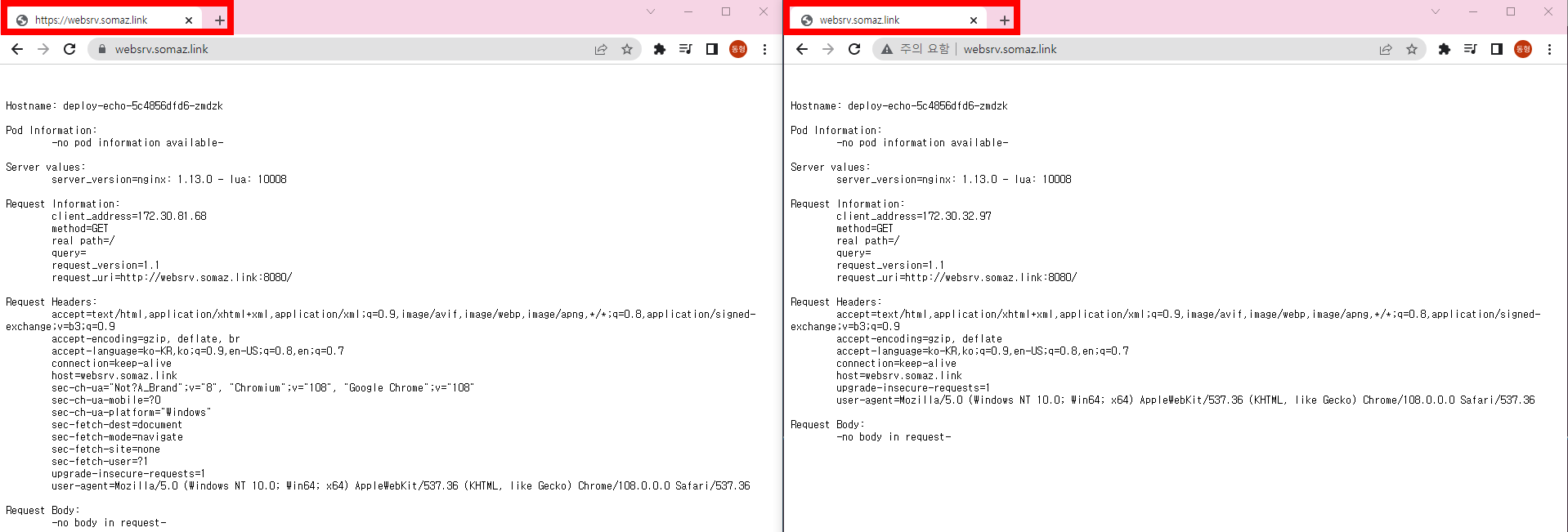 - curl을 통한 HTTP / HTTPS 응답 테스트 성공