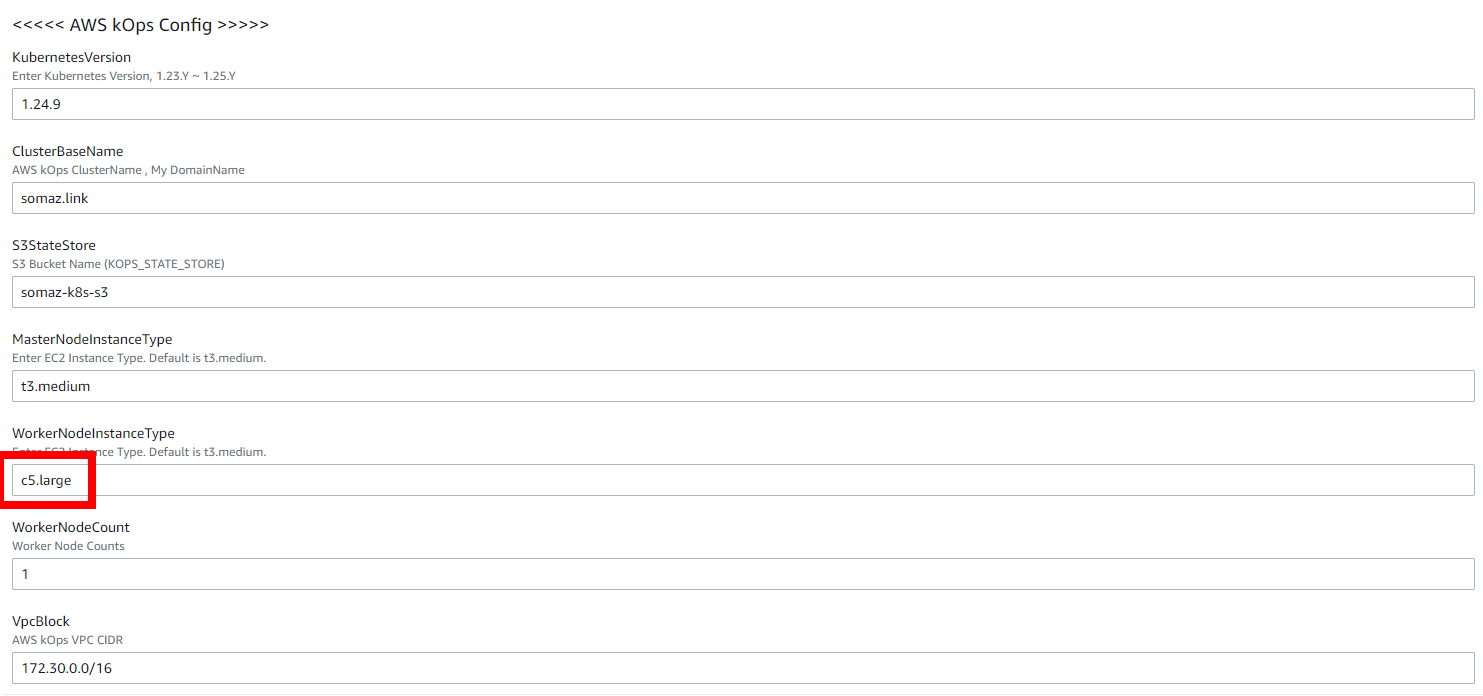 kops 원클릭 배포를 사용하여 c5.large node 1대를 배포한다.