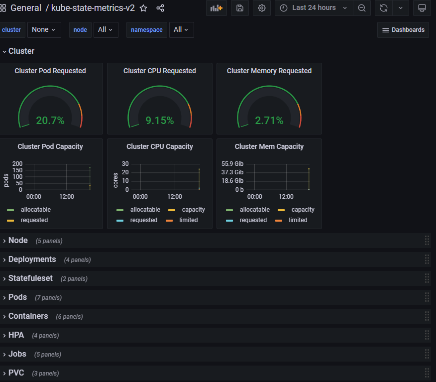 - Metrics Server, kube-state-metrics, node-exporter 등의 메트릭 수집 확인