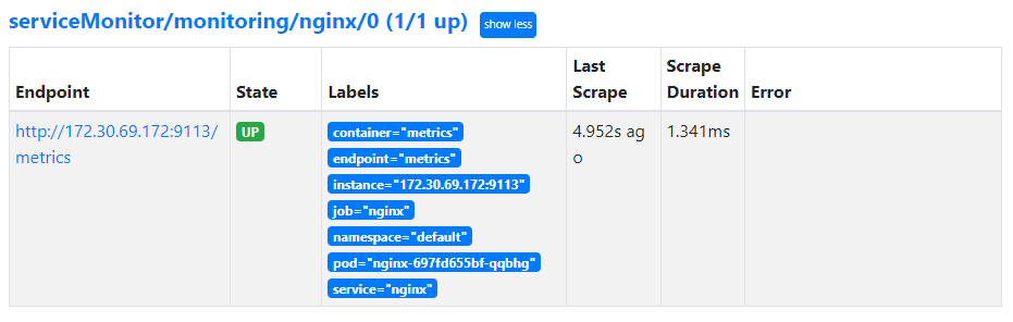 - State → Targets 에 nginx 서비스 모니터 추가 확인