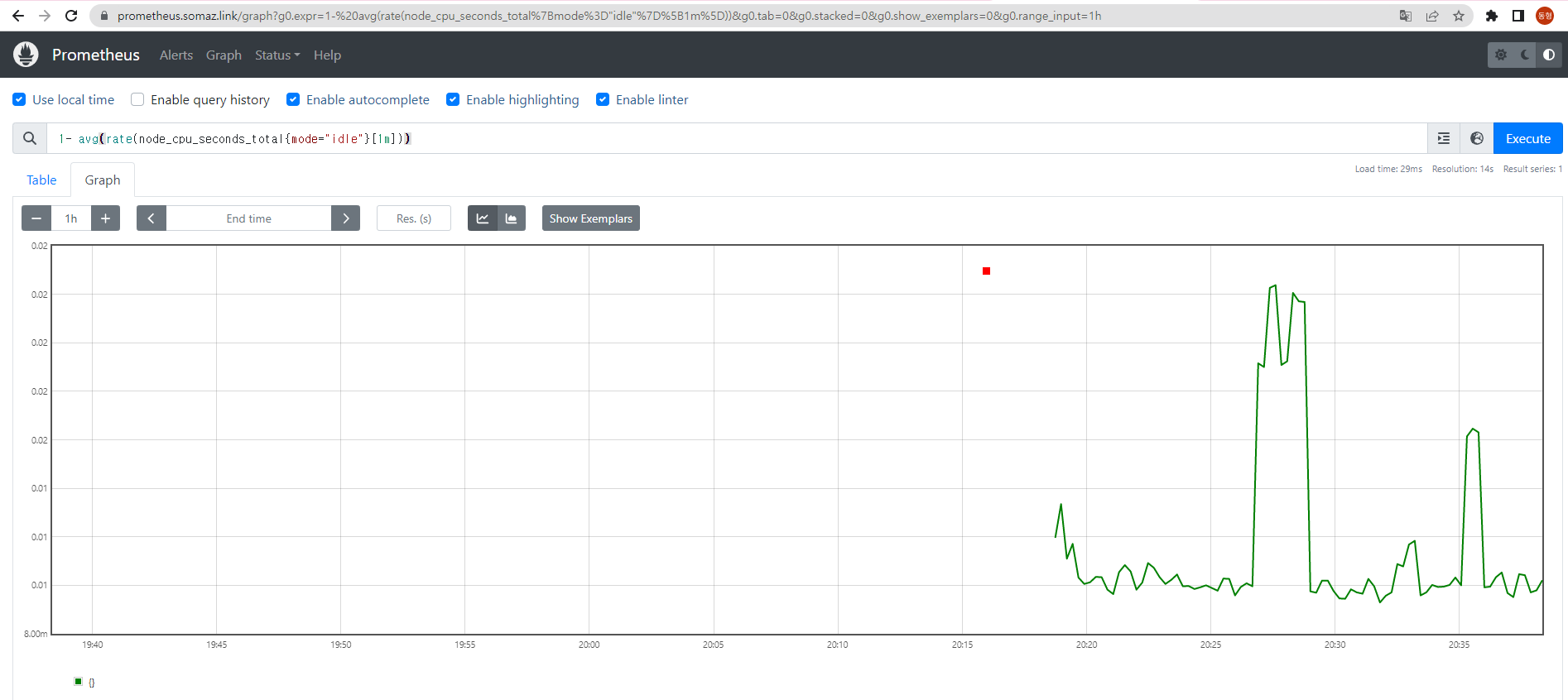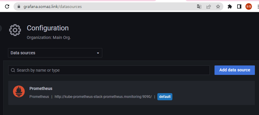 서비스 모니터링 생성 후 1분 정도 후에 프로메테우스 웹서버