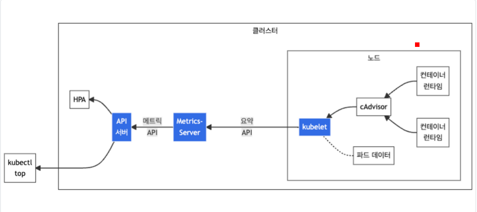 # 메트릭 서버 확인 : 메트릭은 15초 간격으로 cAdvisor를 통하여 가져옴