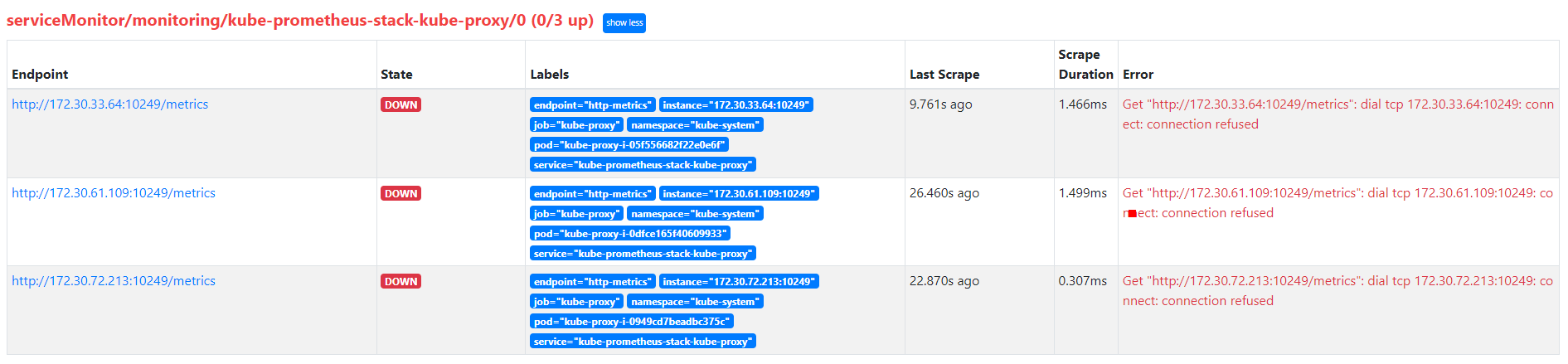 kube-system kube-proxy-i-0dfce165f40609933 1m 12Mi