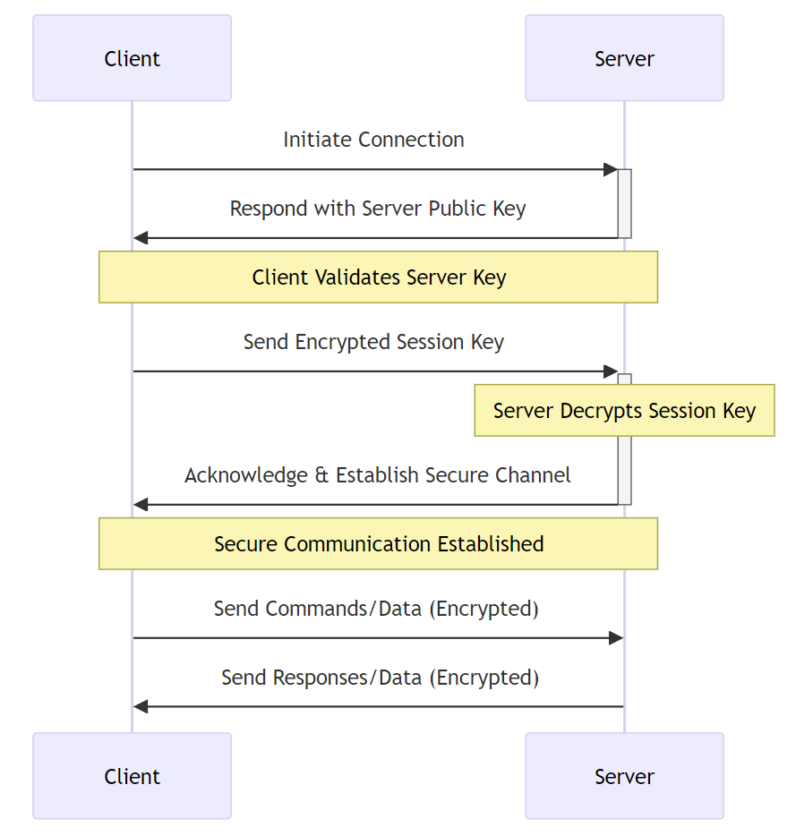 SSH는 클라이언트-서버 모델을 기반으로 동작하며, 다음과 같은 과정을 거친다.