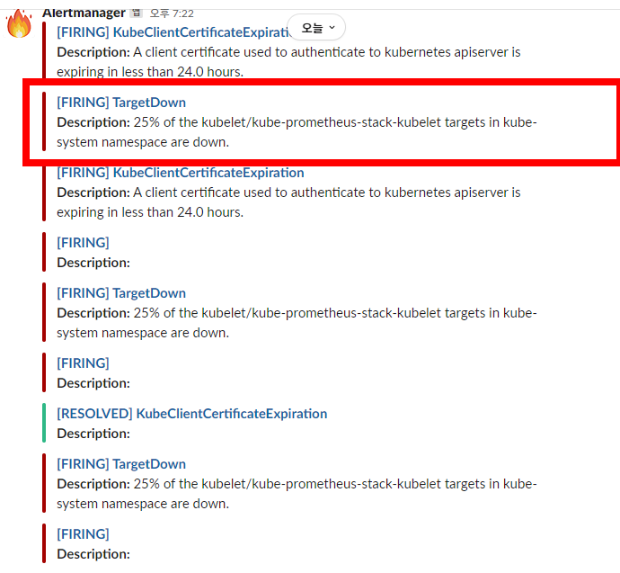 - Awesome Prometheus alerts 를 참고해서 스터디에서 배우지 않은 Alert Rule 생성 및 적용 후 관련 스샷을 올려주세요