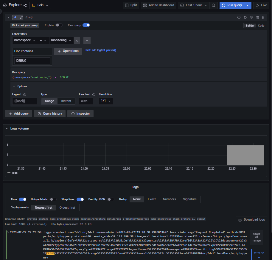LogQL 사용법 익히기 ⇒ 직접 실습 후 관련 스샷을 올려주세요