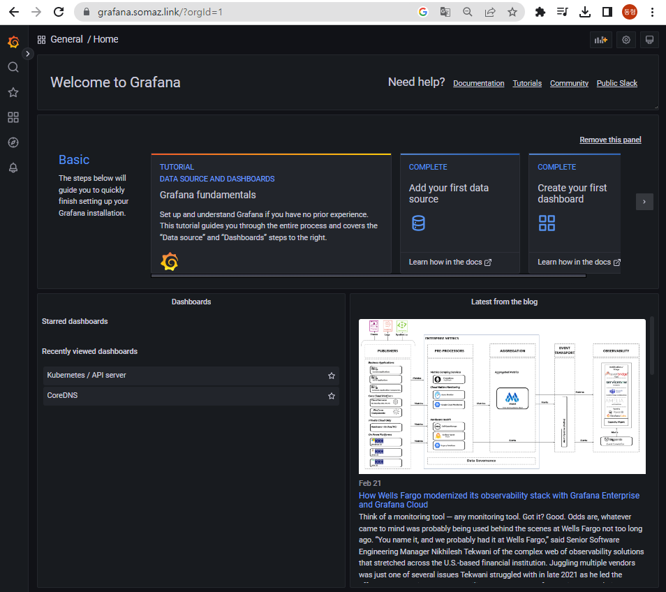 - Grafana에서의 대시보드 시각화 및 로그 조회