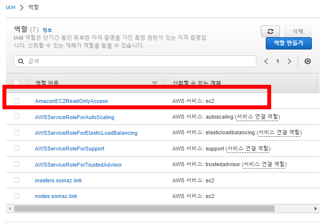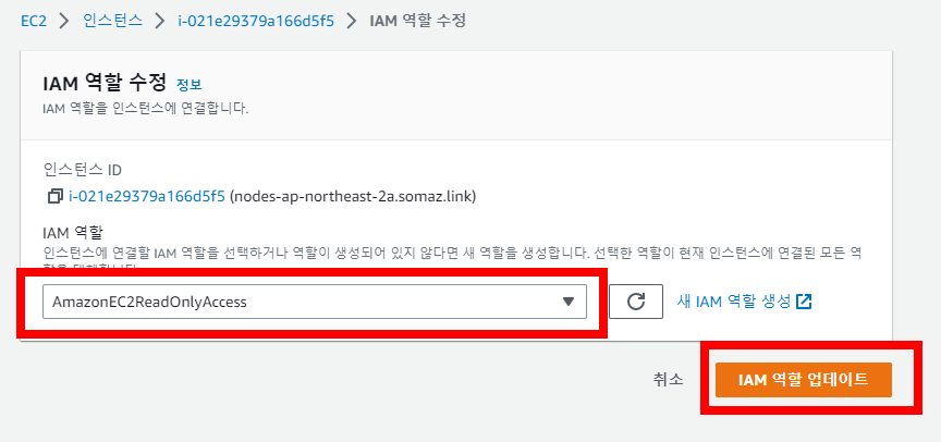- 작업이 끝났다면 IAM 역할을 nodes.<도메인> 기존 역할로 변경해줍니다.