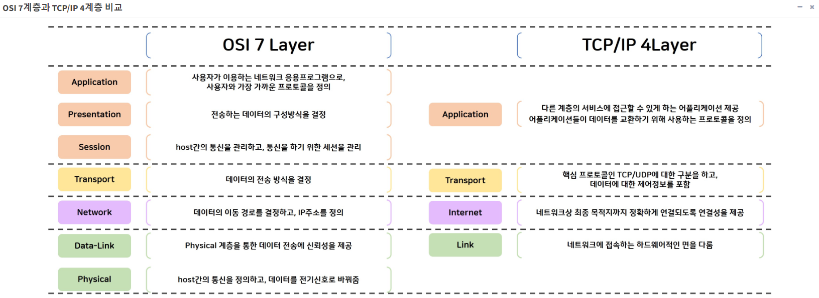 OSI 7계층과 TCP/IP 4계층을 비교해보면,
