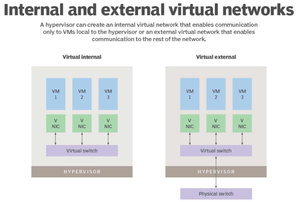 예를 들어, VMware와 같은 전 가상화 솔루션은 여러 가상 머신을 호스팅하는 서버를 만들 수 있다. 이때 가상화된 하드웨어 자원들 중 하나의 예로 가상 CPU, 메모리, 스토리지, 네트워크 등이 있다. 이러한 가상화 기술을 사용하면 한 대의 물리적 서버에서 여러 개의 가상 서버를 운영할 수 있다.