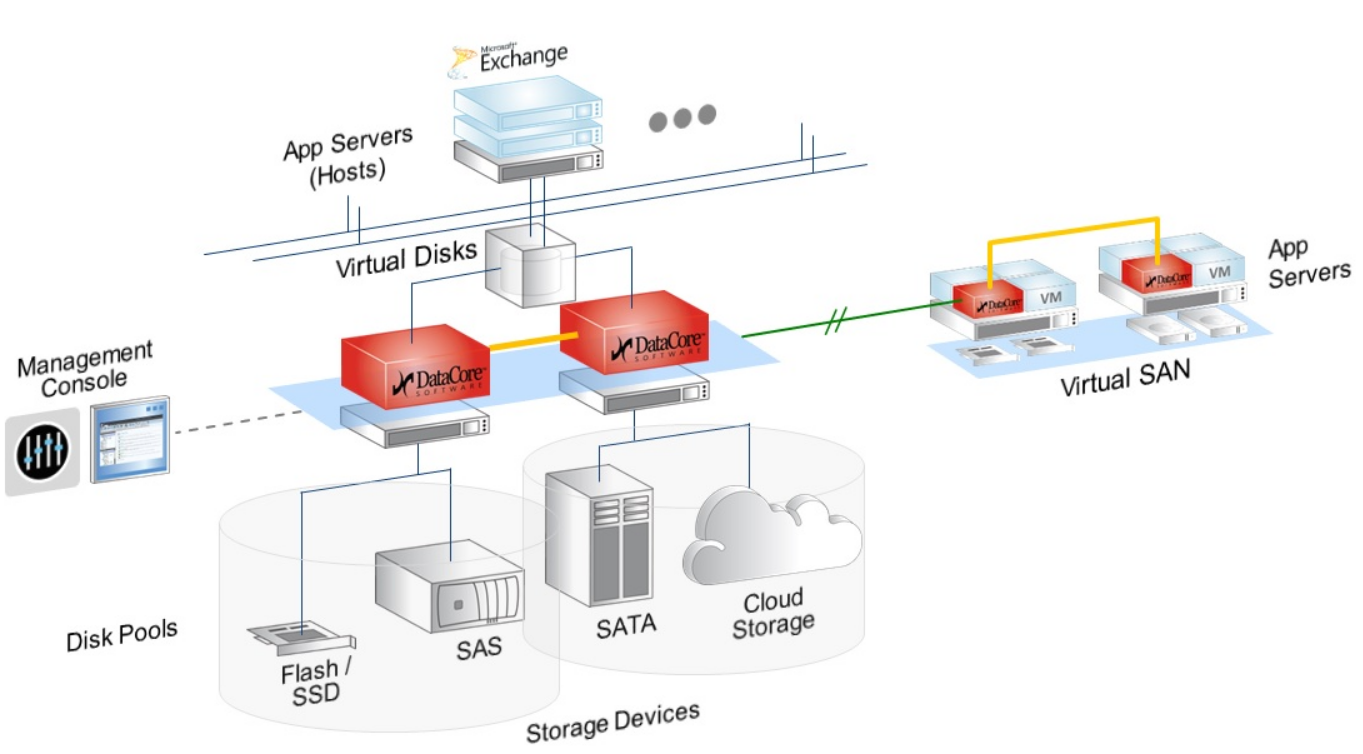 SAN은 다수의 서버가 스토리지 자원을 공유하고 사용할 수 있도록 스토리지 자원을 가상화하여 제공한다. 또한, 스토리지 자원을 네트워크로 연결하여 사용하므로 다수의 서버가 공유하는 것이 가능해진다.