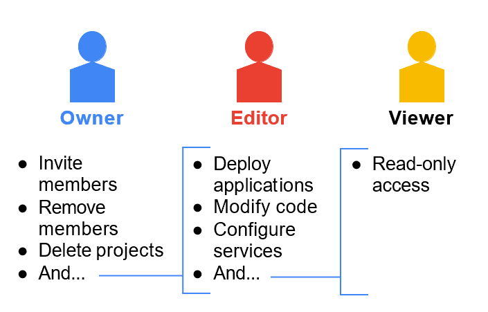 - 소유자 역할은 프로젝트 또는 리소스에 대한 완전한 액세스 권한을 부여한다.