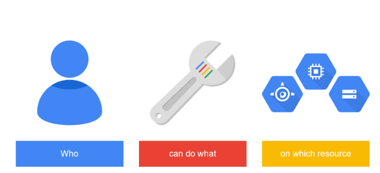 간단히 말해 IAM을 사용하면 Who(누가)(users, groups, and service accounts)가 Which Resource(어떤 리소스)에 대해 What Role(어떤 역할) (Access)을 갖는지 결정한다.