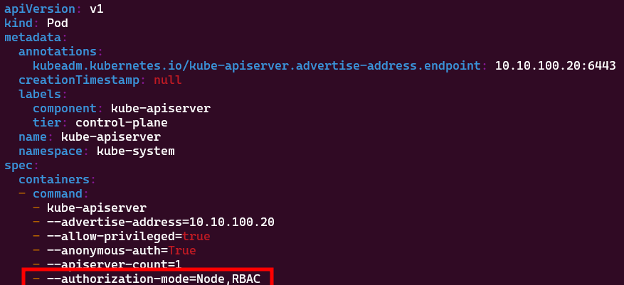 쿠버네티스를 설치할때 기아래와 같이 Node,RBAC 접근제어는 default로 들어가 있다.