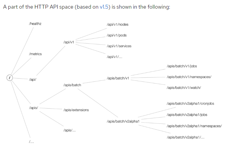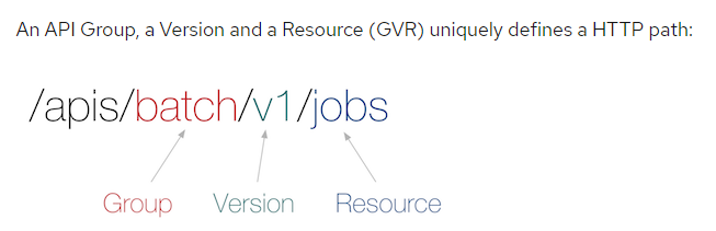 API 그룹, 버전 및 리소스(GVR)는 HTTP 경로를 고유하게 정의한다.