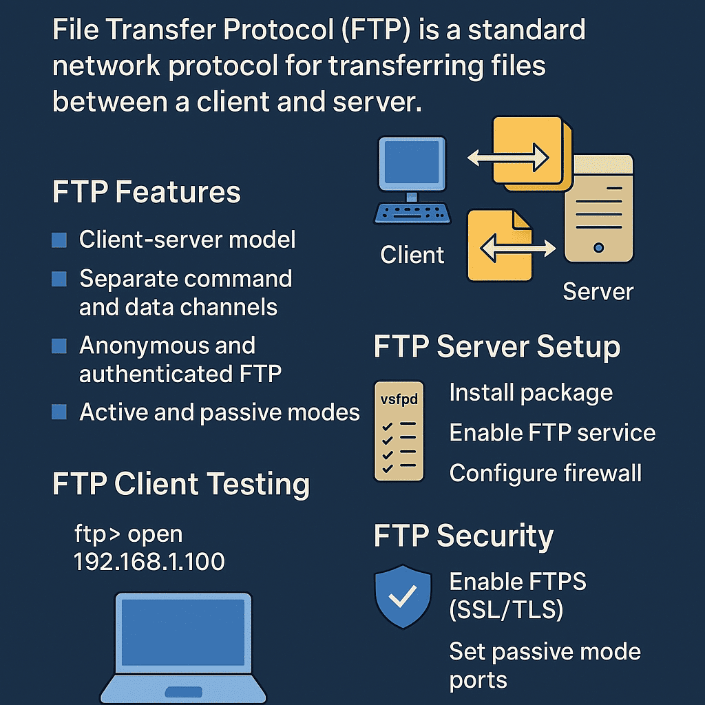 이 글에서는 FTP의 개념, FTP 서버 설정 방법, 보안 설정 및 실습 방법에 대해 다룬다.