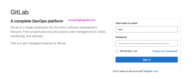 # If the password shown here doesn't work, you must reset the admin password following https://docs.gitlab.com/ee/security/reset_user_password.html#reset-your-root-password.