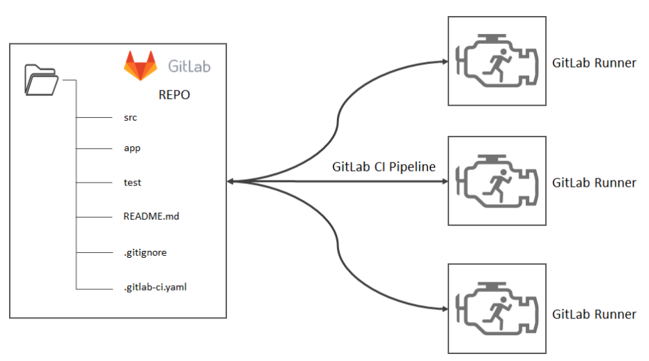 - CI/CD 파이프라인이 구성된 GitLab 리포지토리에 코드 변경 사항을 푸시하면 GitLab은 하나 이상의 작업이 포함된 새 파이프라인을 생성한다.