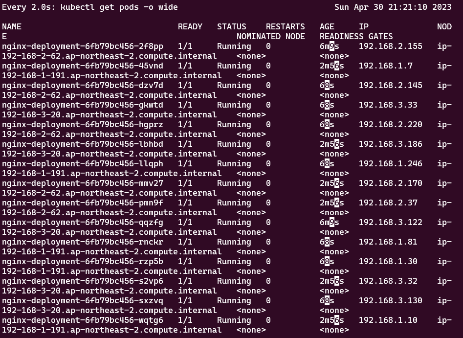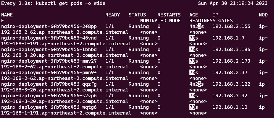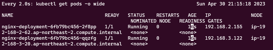 ip-192-168-3-20.ap-northeast-2.compute.internal Ready <none> 4m7s v1.24.11-eks-a59e1f0 t3.medium ON_DEMAND ap-northeast-2c