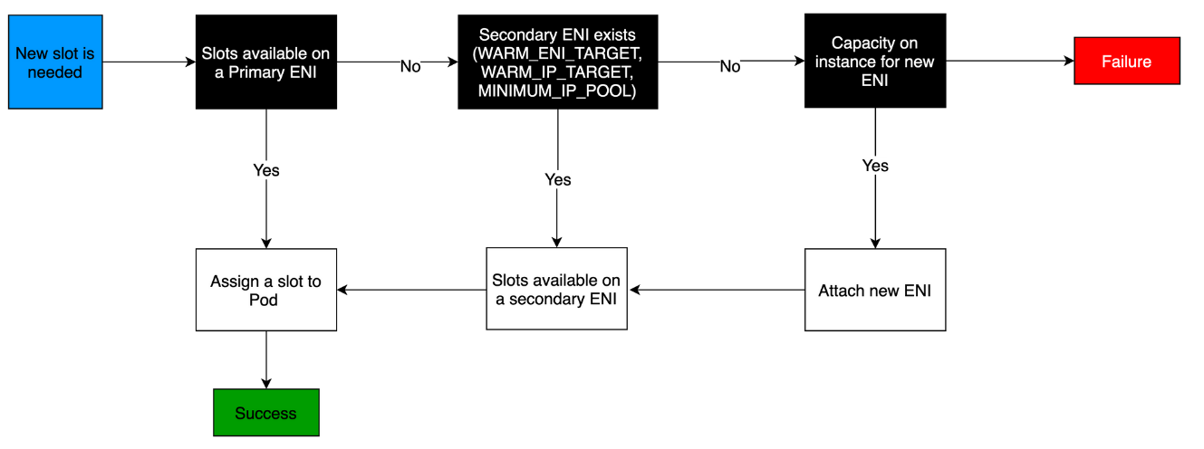 노드가 프로비저닝되면 CNI 플러그인은 노드의 서브넷에서 기본 ENI로 Pool(IPs or Prefix's)를 자동으로 할당해준다.