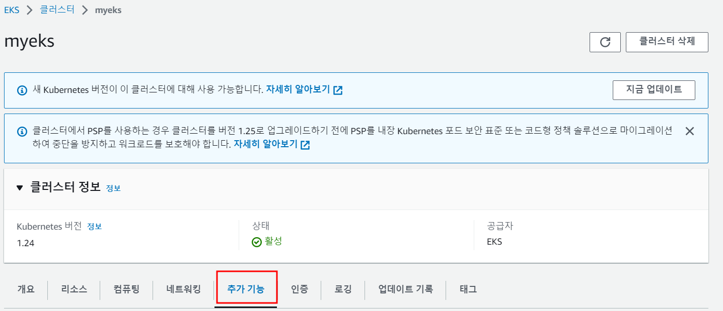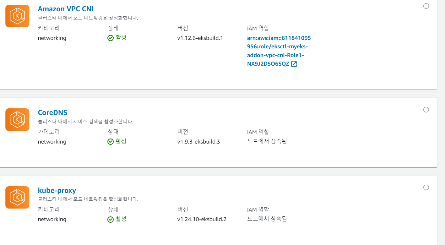 # eksctl 설치/업데이트 addon 확인