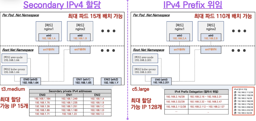 - Prefix Delegation을 통한 Pod 수 제한 극복 등이다.