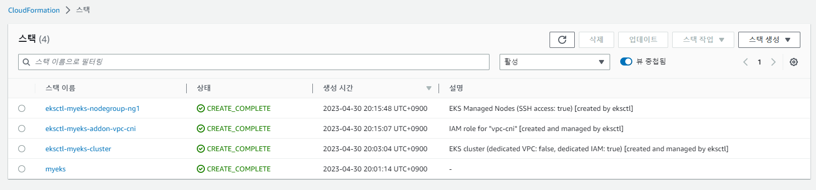 | AEWS 스터디 1주차 - AWS EKS 설치 및 기본 사용 (2) | 2023.04.30 |