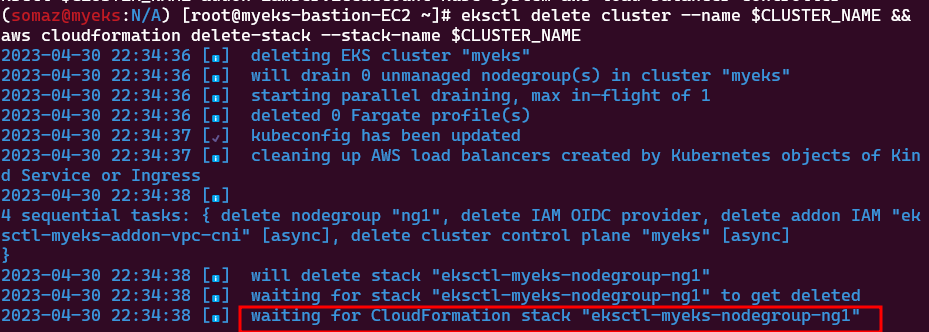 eksctl delete cluster --name $CLUSTER_NAME && aws cloudformation delete-stack --stack-name $CLUSTER_NAME
