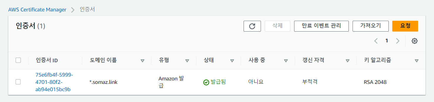 AWS의 Certificate Manager로 도메인 인증서는 발급해놓은 상태여야 한다.