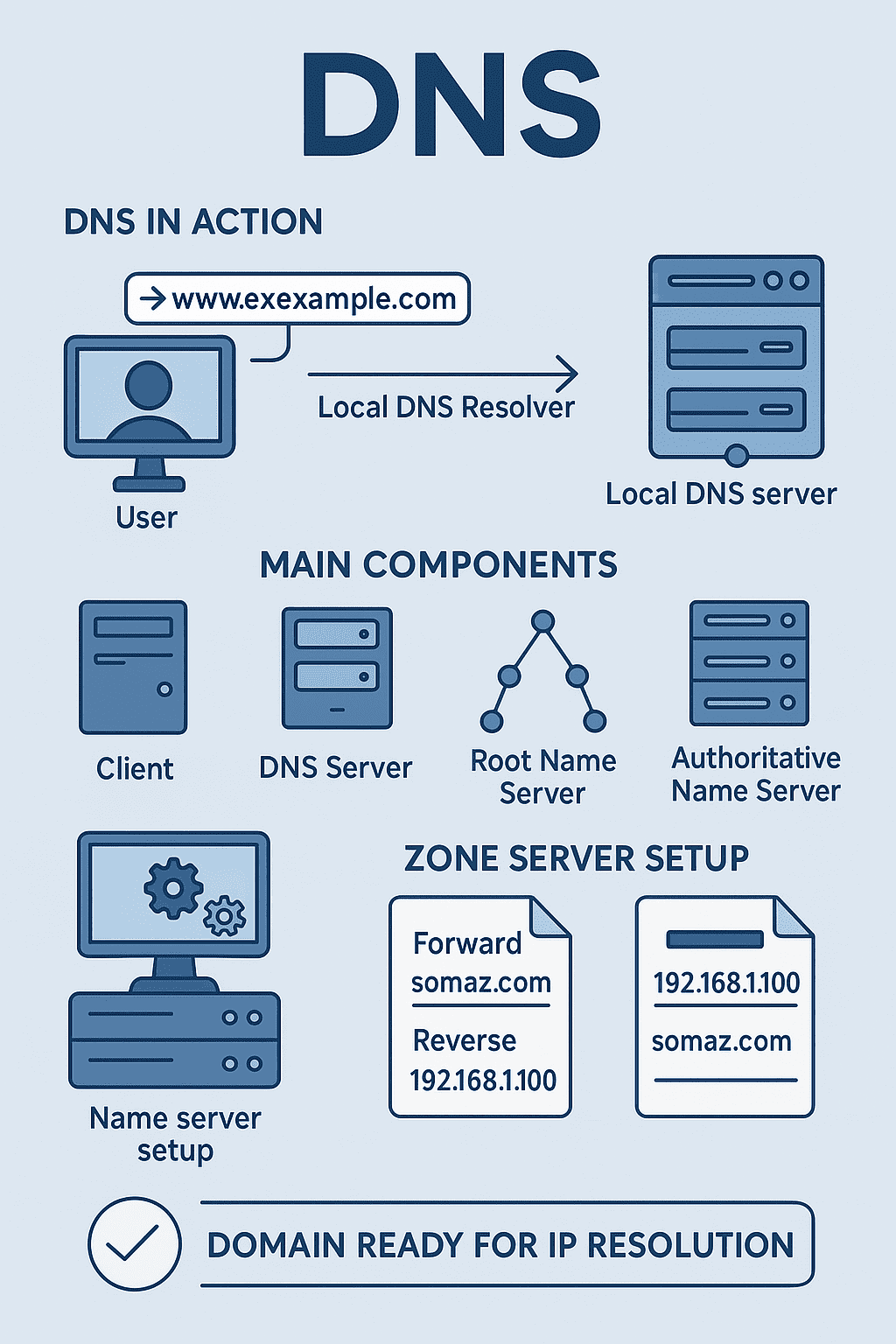 이번 글에서는 DNS 개념부터 설정 방법, 테스트까지 DNS 서버 구축 방법을 다루었다.