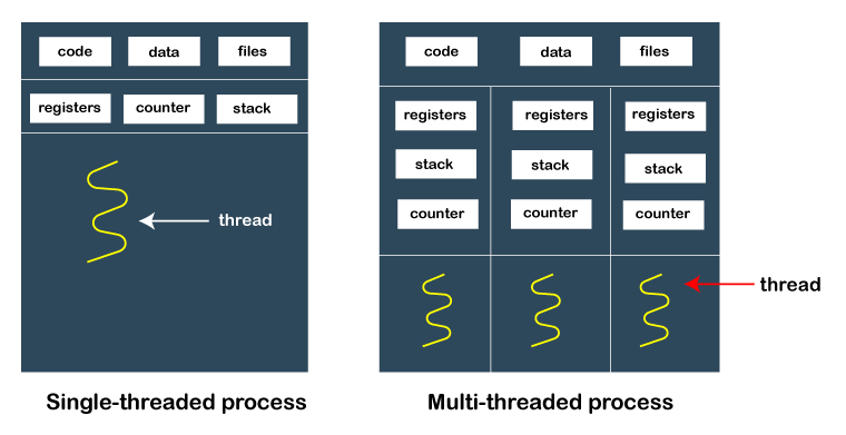 프로세스와 스레드는 모두 서로 관련되어 있고 매우 유사하므로 둘 사이의 차이점을 이해하는 데 혼란을 야기한다. 프로세스와 스레드는 독립적인 실행 순서이지만 프로세스가 서로 다른 메모리 공간에서 실행되는 반면 동일한 프로세스의 스레드는 공유 메모리 공간에서 실행된다는 점에서 차이가 있다.