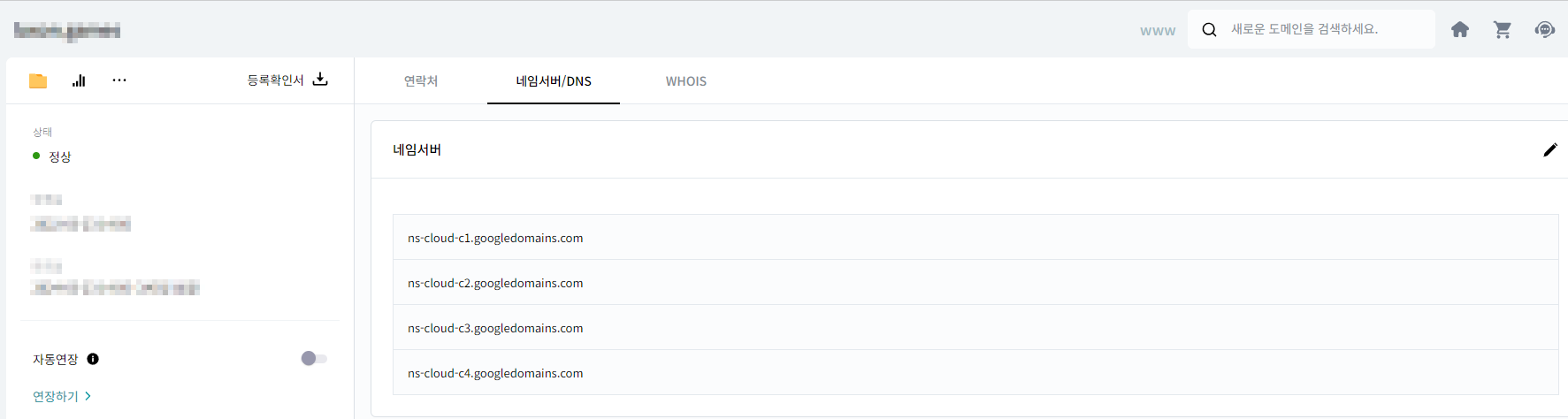 2. hosting.kr과 유사한 도메인을 관리 및 구매할 수 있게 해주는 사이트에서 네임서버를 위에 만든 zone과 동일하게 변경