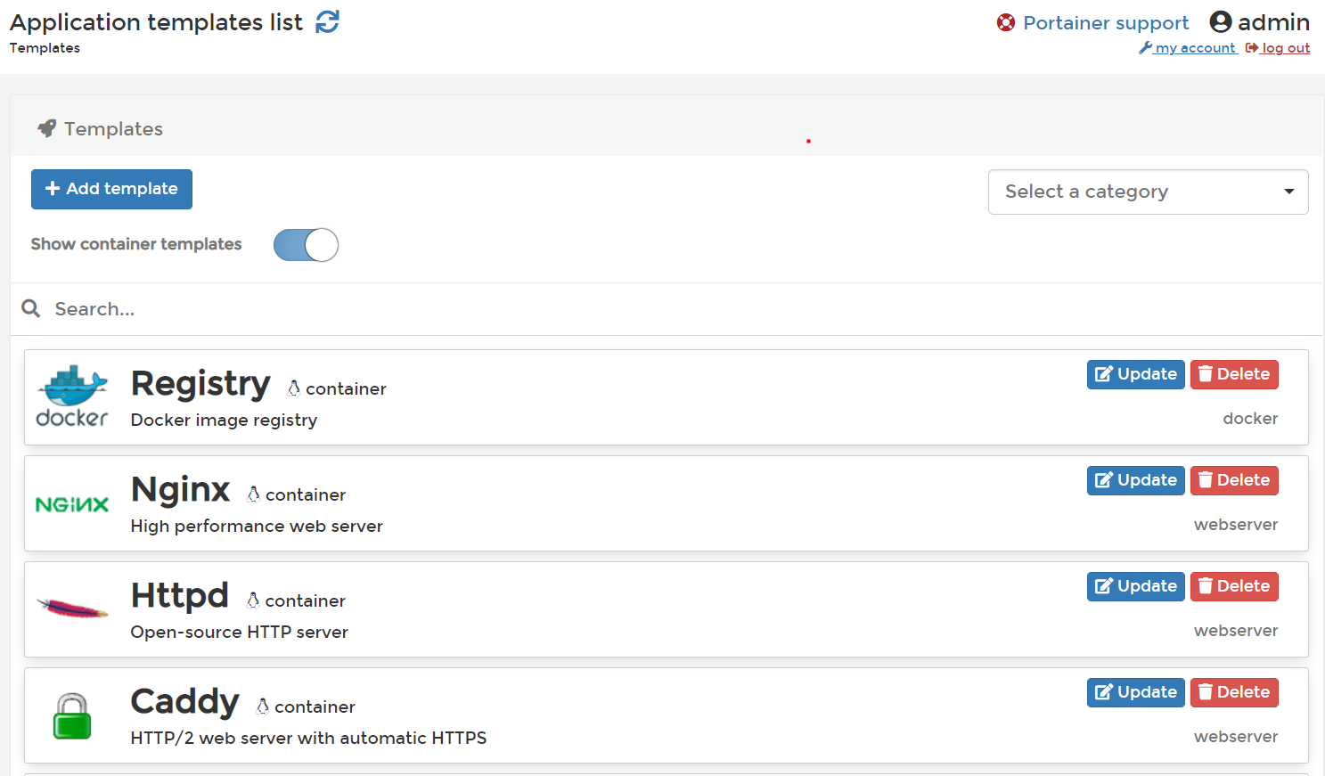🔹 Templates → 미리 설정된 Docker 템플릿으로 쉽게 컨테이너 배포