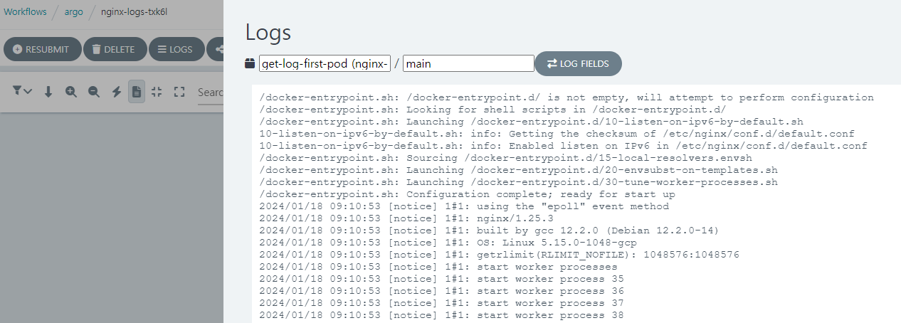 argo submit nginx-logs-workflow.yaml -n argo --parameter nginx-pod-1=nginx-deployment-57d84f57dc-4g5vv --parameter nginx-pod-2=nginx-deployment-57d84f57dc-5jc4t