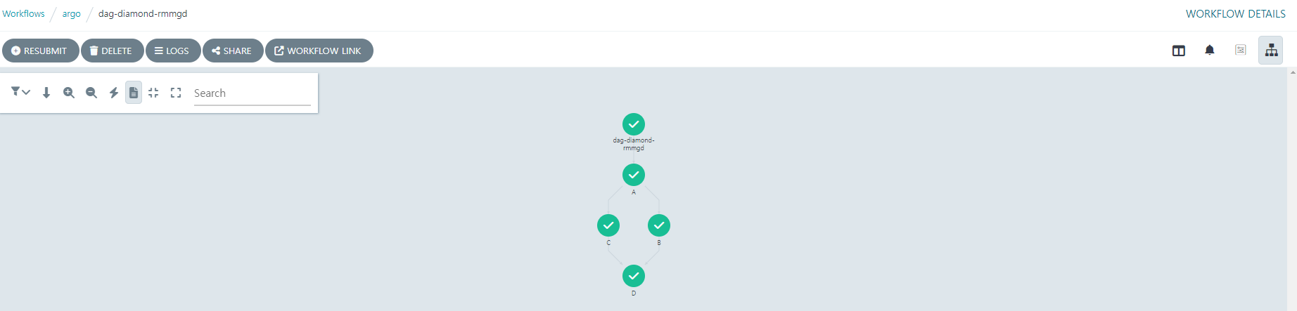 해당 워크플로에서는 종속성이 없는 A가 먼저 실행된다. A가 끝난뒤 B와 C가 동시에 실행된 후 B와 C가 종료 된 후에 D가 실행된다.
