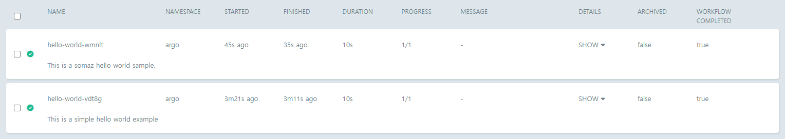 argo submit step-hello.yaml -n argo