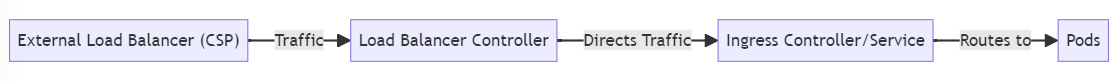 CSP 환경에서 인그레스 컨트롤러는 종종 클라우드 제공 업체의 로드 밸런서 서비스와 통합된다.