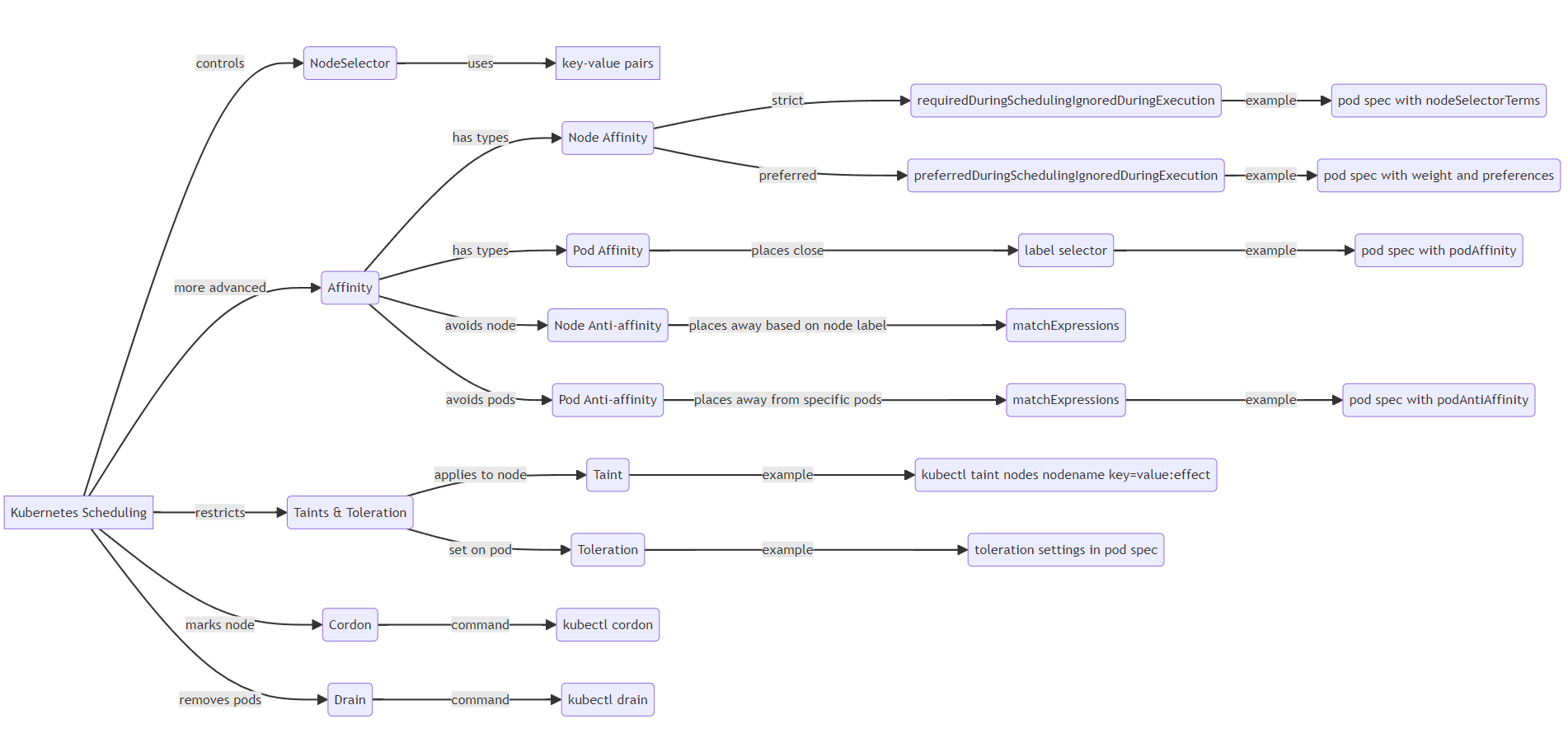 - 주요 유형: 노드 어피니티(Node Affinity) 및 파드 어피니티(Pod Affinity).