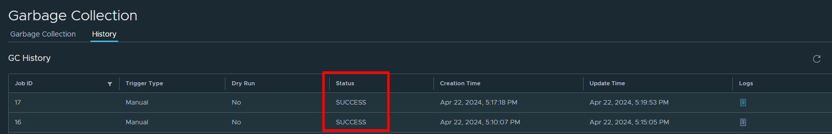 이 문제를 해결하기 위해 로그 확인, 컨테이너 상태 점검, 누락된 컨테이너 재기동 등을 수행하였으며, 최종적으로 GC 작업을 정상적으로 완료할 수 있었다.