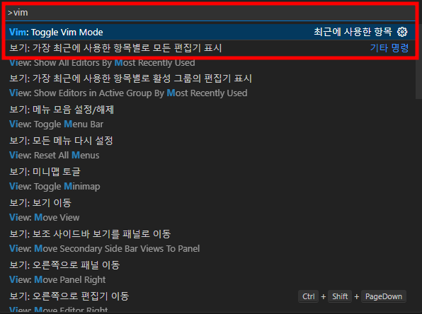 이 방법으로 VSCode 에서 vim 모드를 켜고 끌 수 있다.
