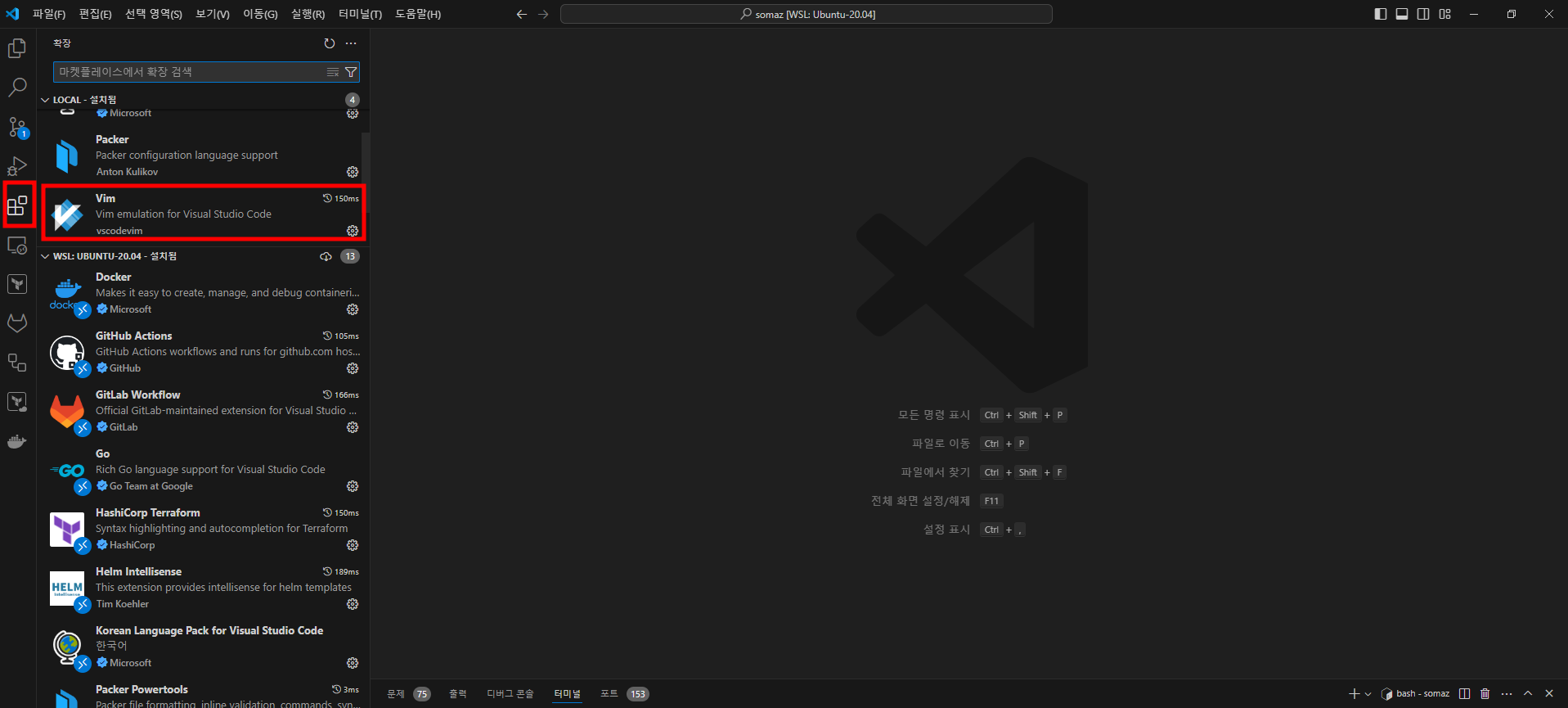 VSCode에서 Vim Extension을 활용하면 터미널 환경의