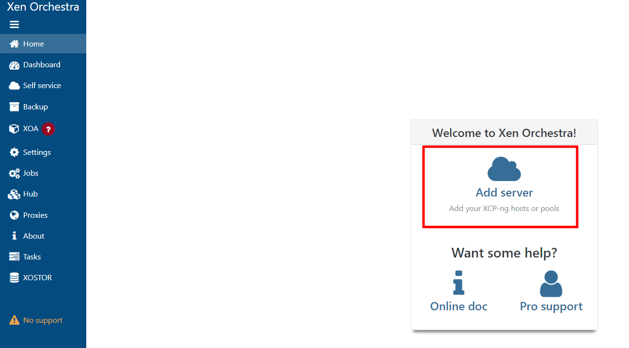 사용 편의성과 지원을 원하는 경우 Xen Orchestra Appliance를 사용하는 것이 좋다. 이는 XenServer 또는 XCP-ng 환경으로 간단히 가져올 수 있는 사전 구성된 VM이다.