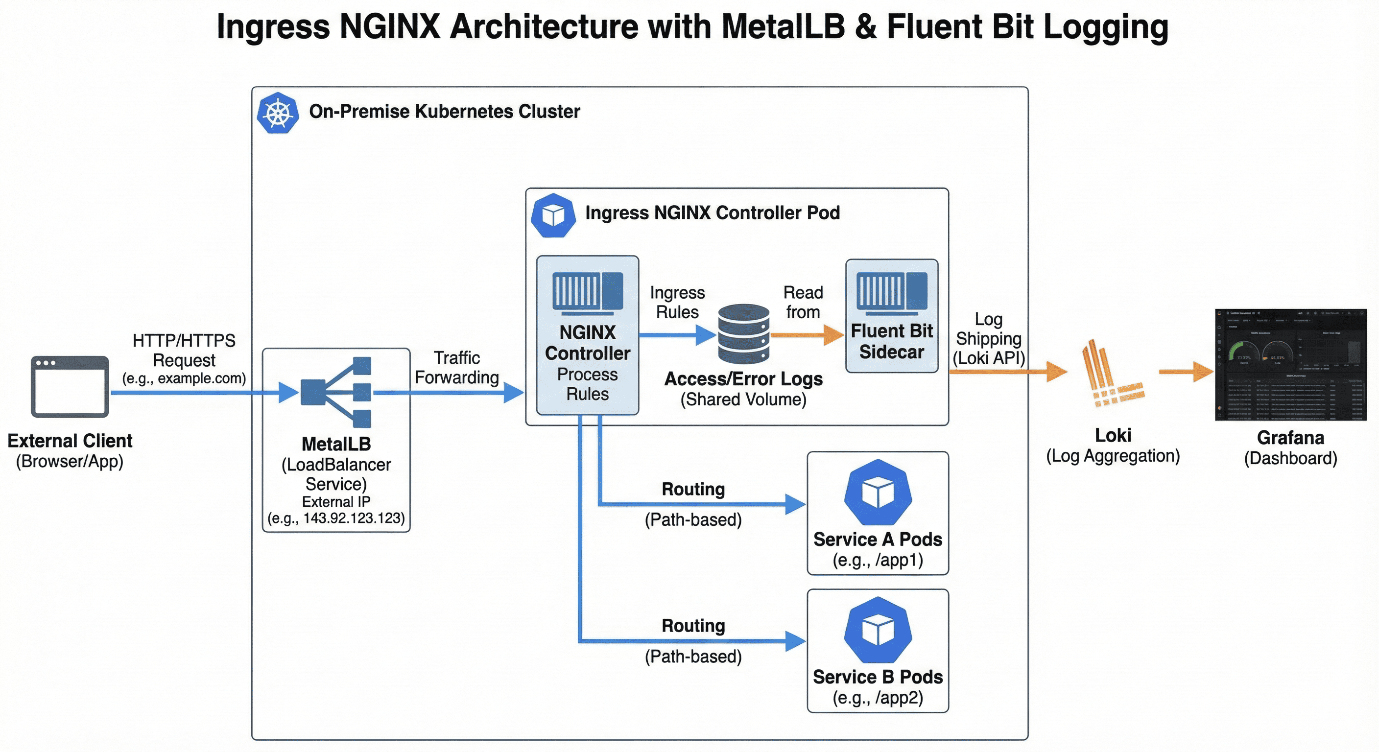 특히 On-Premise 환경에서는 LoadBalancer 서비스 유형을 사용하기 위해 MetalLB와 함께 Ingress NGINX를 구성하는 것이 일반적이다. 이를 통해 클라우드 환경에서 제공되는 네트워크 기능을 Bare-Metal에서도 구현할 수 있다.