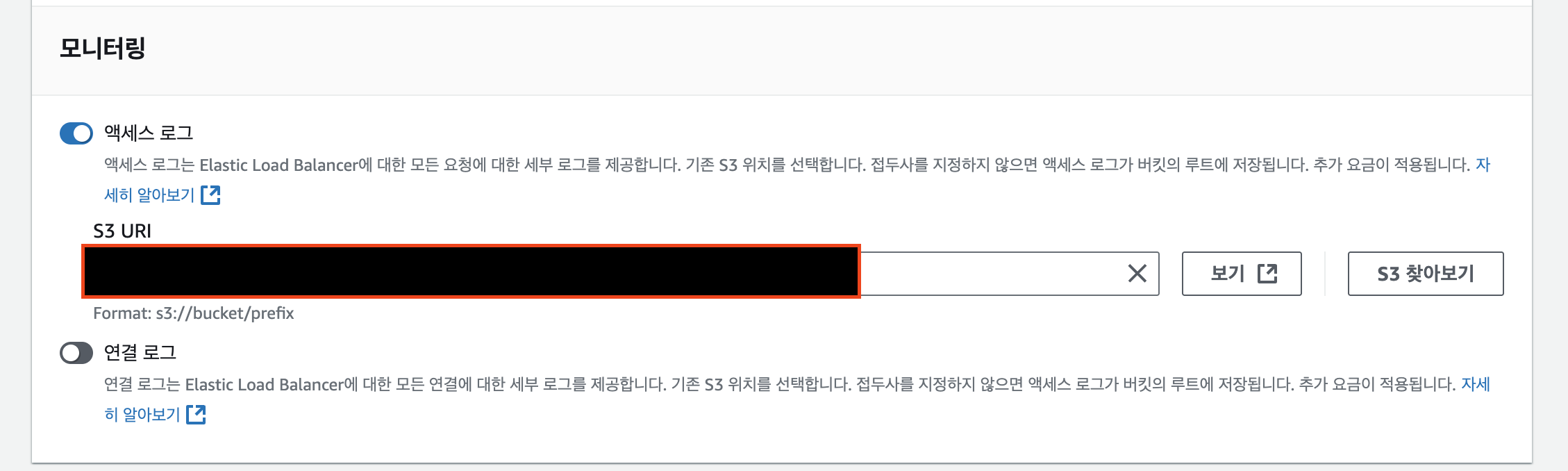 LoadBalancer 선택 → Load Balancer 속성 편집 → 액세스 로그 활성화 → S3 URI 등록